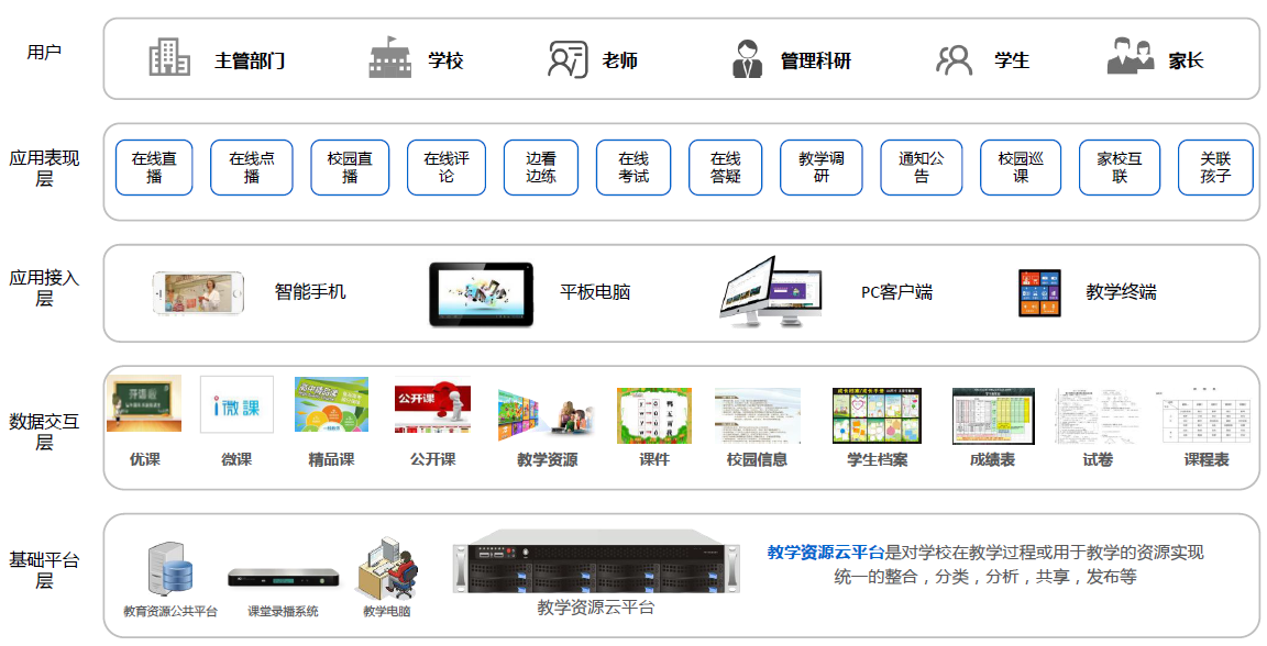 以优质教育资源共建共享和应用、资源整合为中心,融入到教学、学习、管理等工作领域、最终实现提高