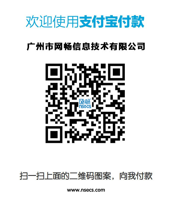 支付宝帐号(供企业或个人使用): 账户名: pay@nsecs.com 姓名: 广州市网畅信息技术有限公司 -