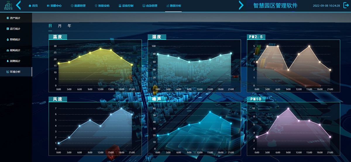 安保人员可以通过视频墙对不同区域的监控画面进行查看和比对,结合GIS数据对园区可控设备进行管理和远程控制。针对园区内可能存在的各类突发事件和灾害,制定完善的应急预案,并采用智能化手段进行管理和协调。同时系统对园区内资产运行、照明耗能、故障环境进行精细化数据分析,及早发现并解决问题,为园区企业和居民用户提供更好的工作和生活环境。