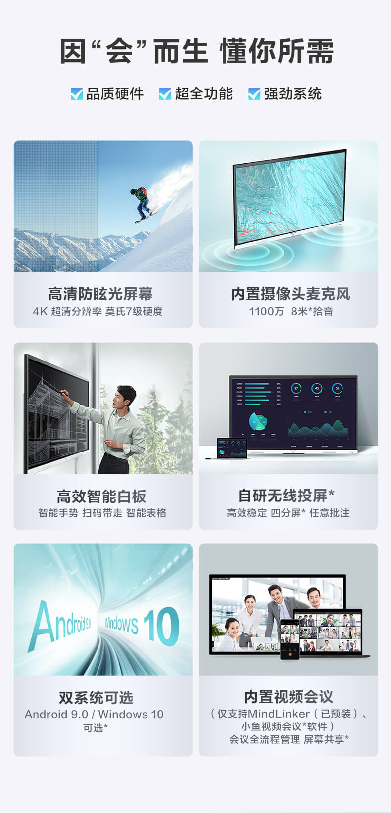 智能会议平板触摸一体机触控屏商用会议电视电子白板视频会议教学一体机65/75/86寸