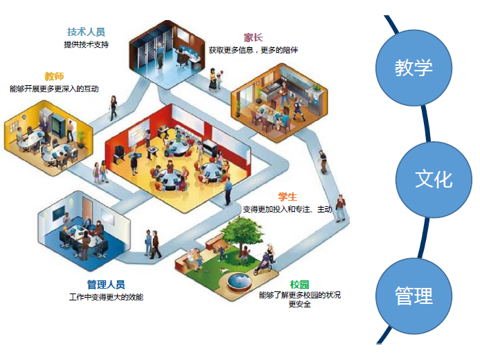 以优质教育资源共建共享和应用、资源整合为中心,融入到教学、学习、管理等工作领域、最终实现提高