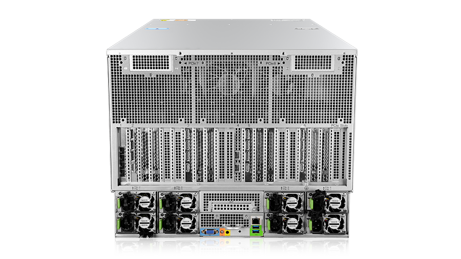 直通8卡服务器风扇版:支持 8 张 600W 3 宽、3.3 宽、3.5 宽、4.5 宽 RTX 5090 风扇卡或其他600W 风扇卡 GPU, GPU 采用前后4+4 分离上下分风道布局 直通8卡服务器涡轮版:支持 8 张 600W 2 宽、2.5 宽 RTX 5090涡轮卡或其他 600W 涡轮卡 GPU,GPU采用 8 卡后置并排集中风道散热布局 |